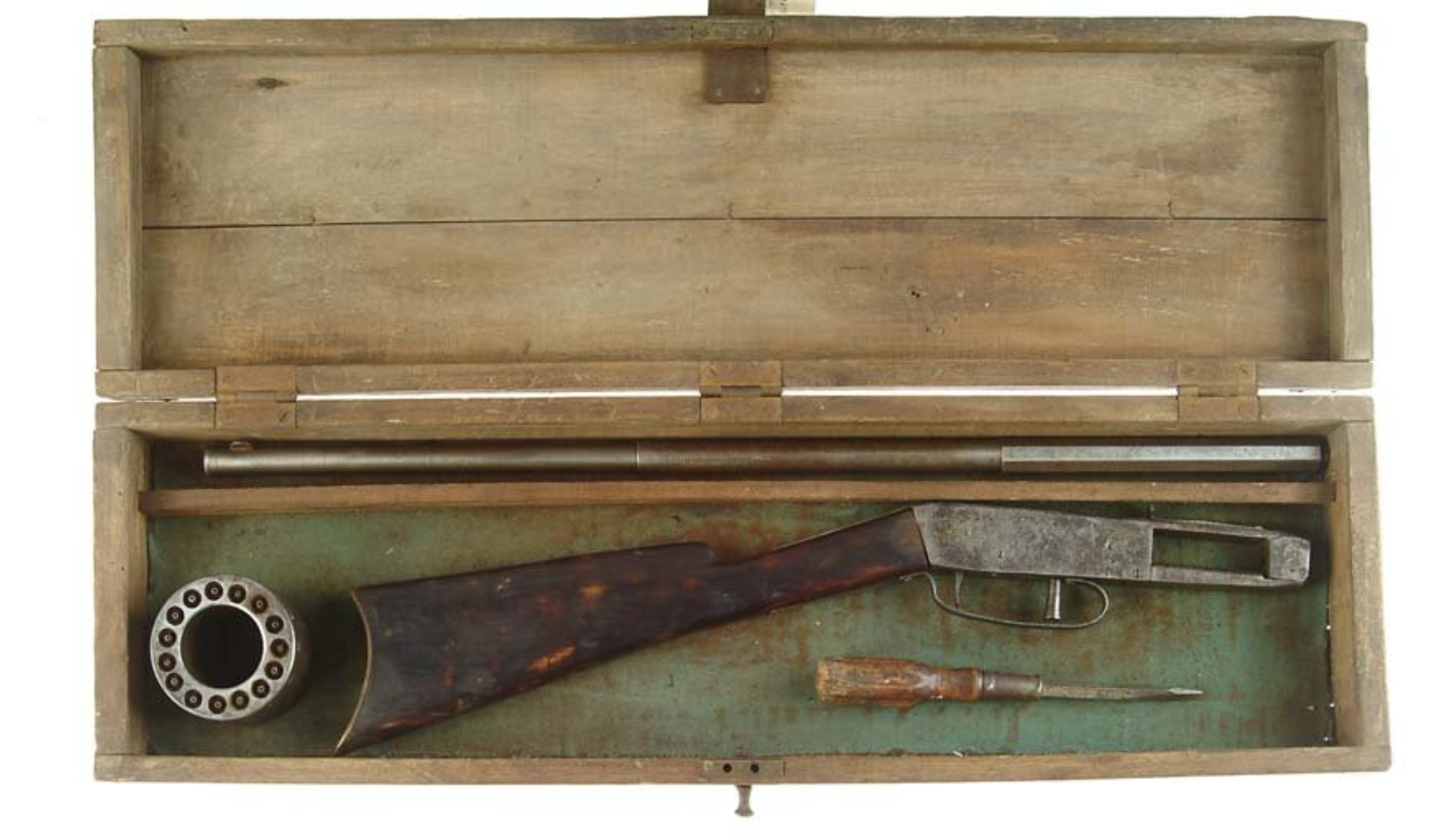 Несмотря на эксцентричность конструкции, эта винтовка могла сделать перезарядку еще быстрее. Конечно, рычаг для снаряжения камор на ней тоже был (но не всегда).
