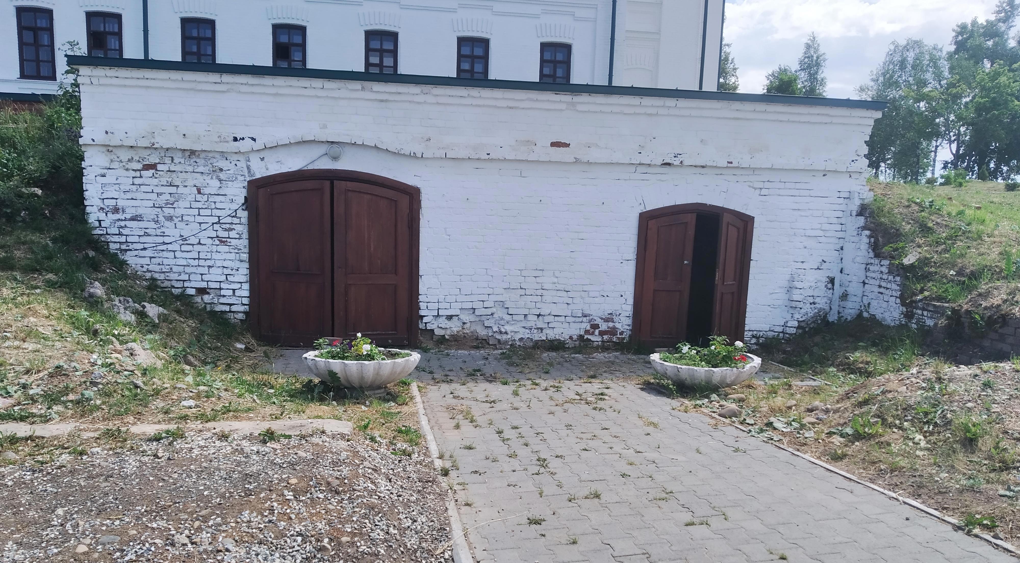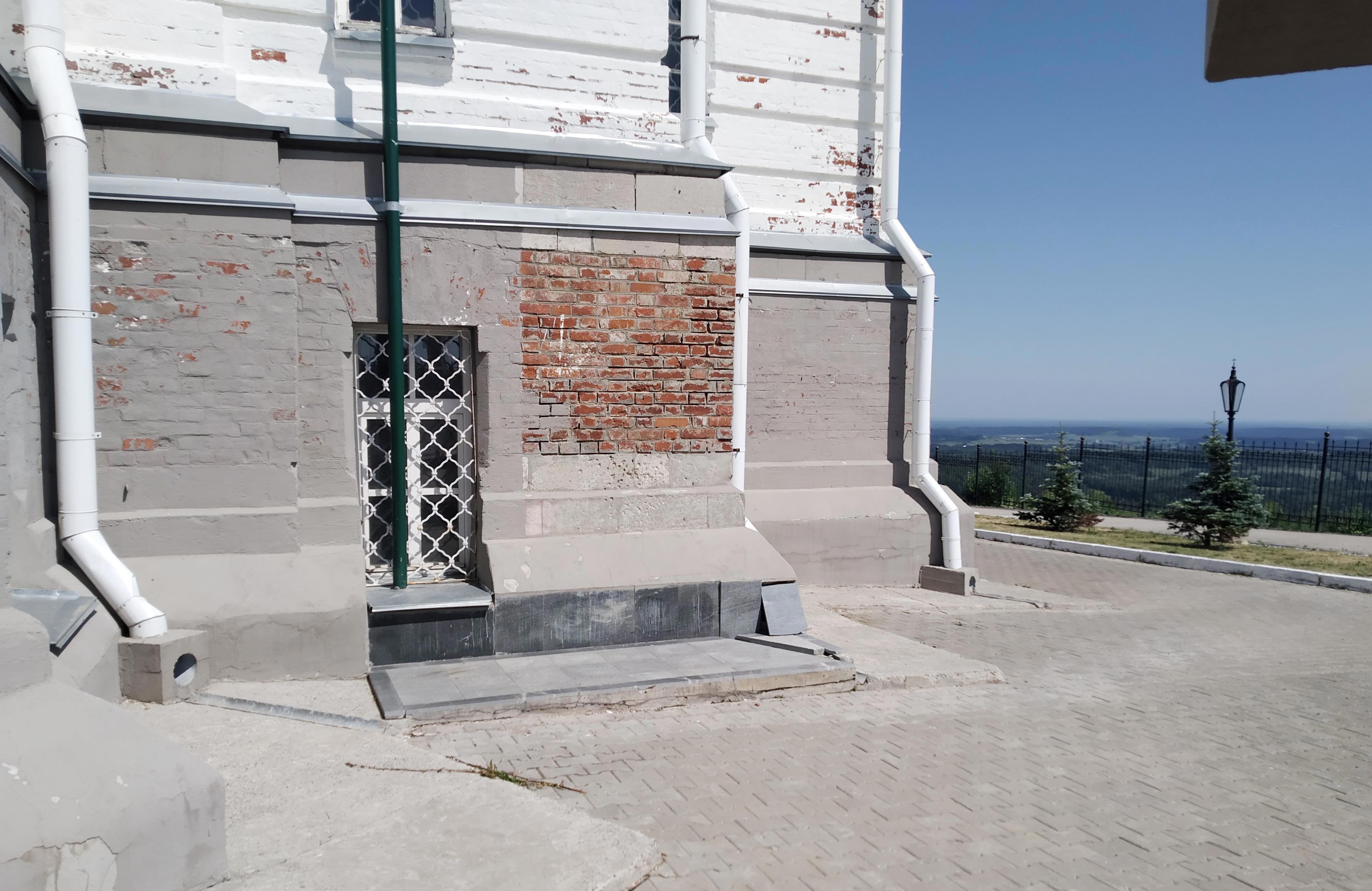 Неоштукатуренная часть стены оставлена специально, она полна пулевых отметин, здесь в начале двадцатого века проводились расстрелы: