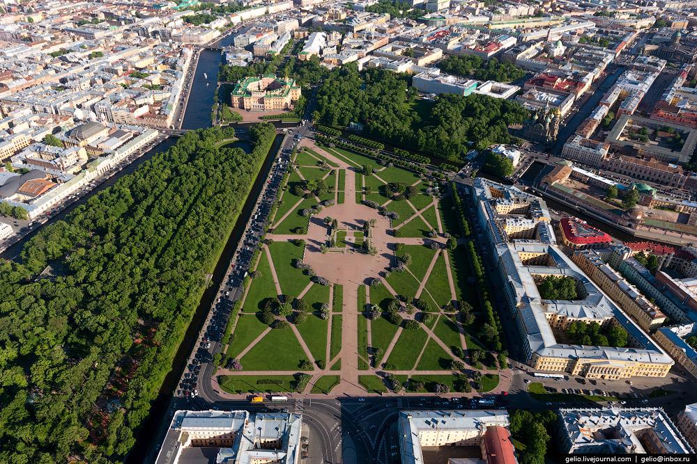1. Марсово поле. Основные события, связанные с этим местом, произошли в XVIII столетии, когда болотистая роща была вначале превращена в Большой луг — место для проведения войсковых смотров, а затем — в Потешное поле, на котором устраивались различные торжества и карнавалы. После возведения рядом с полем дворца Екатерины I, эту местность стали называть Царицыным лугом, а Марсовым поле было названо лишь в 1805 году — в честь древнеримского бога войны Марса.