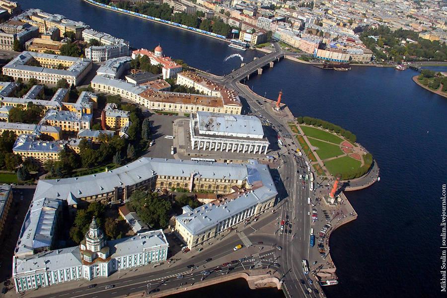 8. Стрелка Васильевского острова. Здание Биржи. Ростральные колонны. А за Биржей - роддом, где я родился.))) Здание слева внизу - голубое с башенкой - Кунсткамера и внутри очень интересный музей народов мира. Правее - роскошный Зоологический музей.С другой стороны острова - розовая крыша с башенкой - бывшая Таможня.
