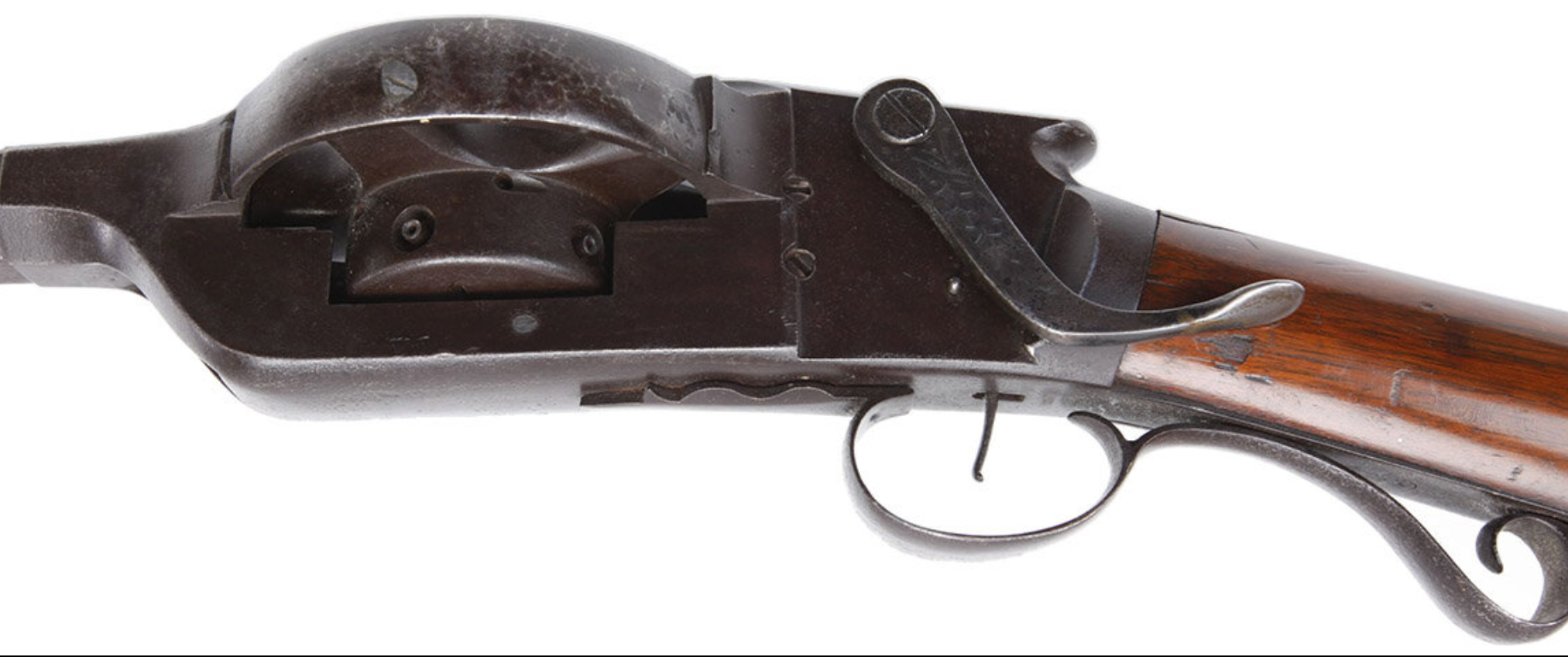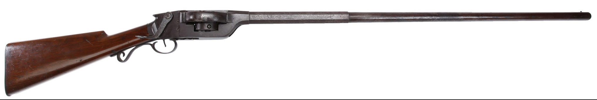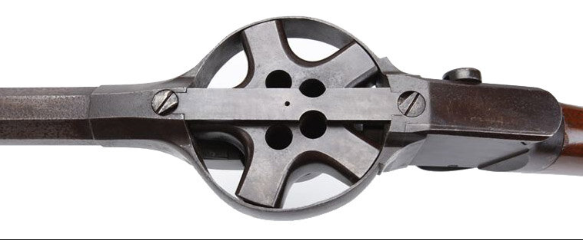 Несмотря на характерный вырез напротив нижней каморы, который был привычен на капсюльных "револьверках", эта винтовка уже создавалась под современного типа патрон центрального боя.