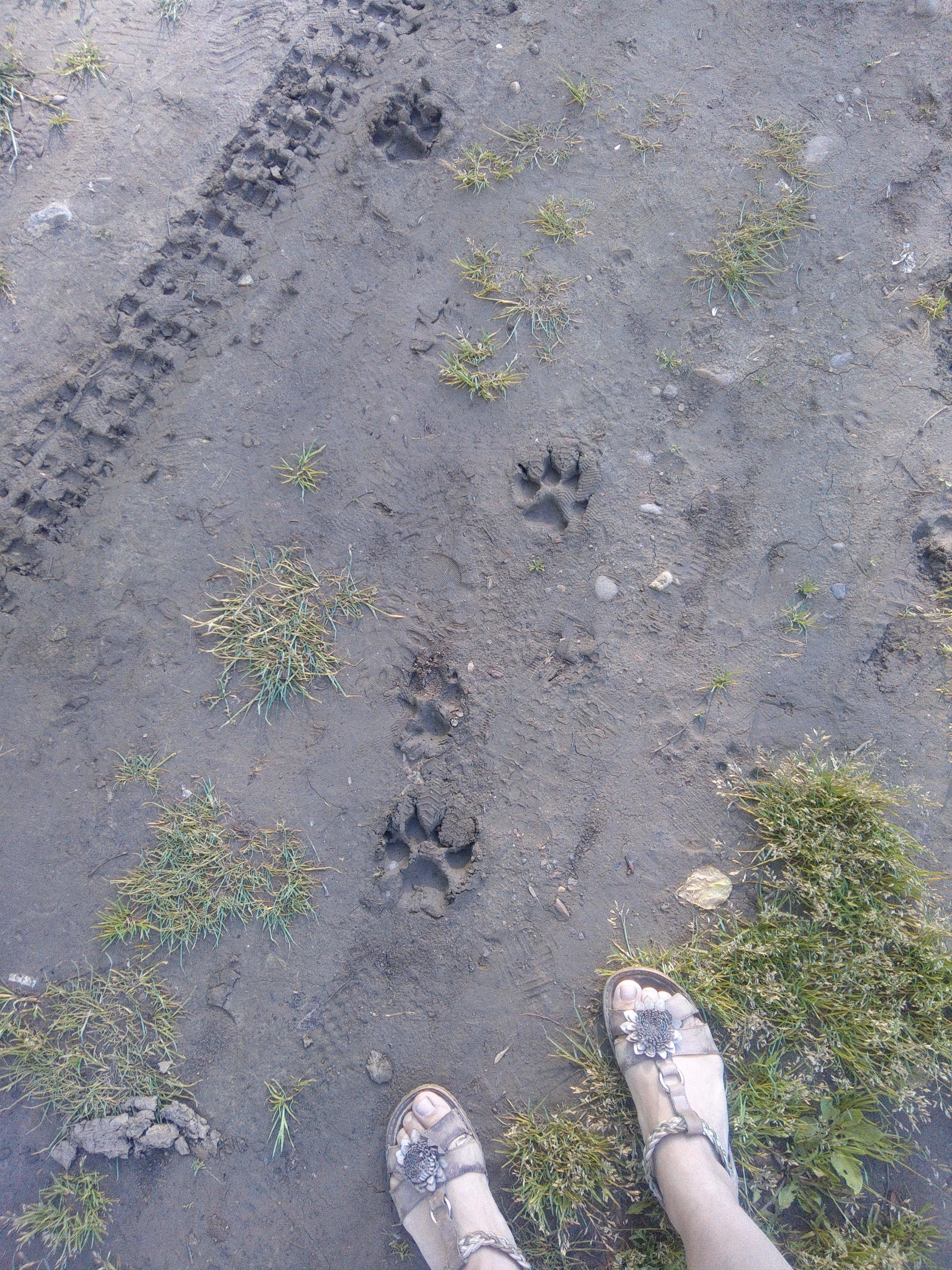 Пляж я, конечно, сфотать не догадалась, зато есть вот такой кадр: кто-то с собачкой гулял. А это рядом - мои ножки. Большая собачка, наверное...