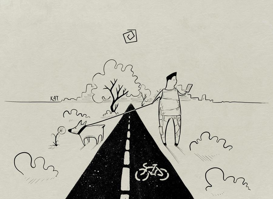 в качестве иллюстрации — мой любимый жанр выгула собак на велодорожках, я его наблюдаю почти ежедневно — вот и сегодня утром мироздание побаловало
