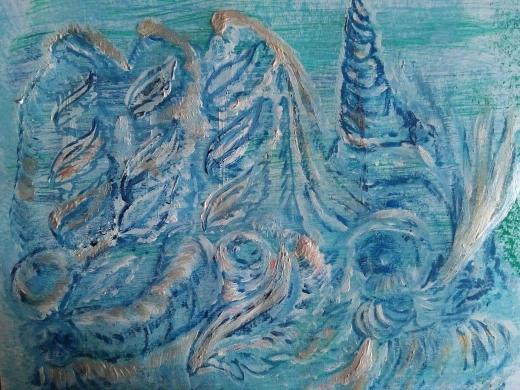 Собираюсь на работу (да, не у всех выходной утром в воскресенье) немного раздражаюсь от того, что долго сохнет перламутр из экспроприированных у дочки красок, да еще и телефон не совсем точно цвета передаёт. Поэтому сегодня только маленький фрагмент рисунка - только для отчёта, даже не половина. Картину не забросила...(художники- не ржать! я только учусь, и да, я на АТ меньше года, да и вообще я сюда просто почитать всего одну книжку зашла.