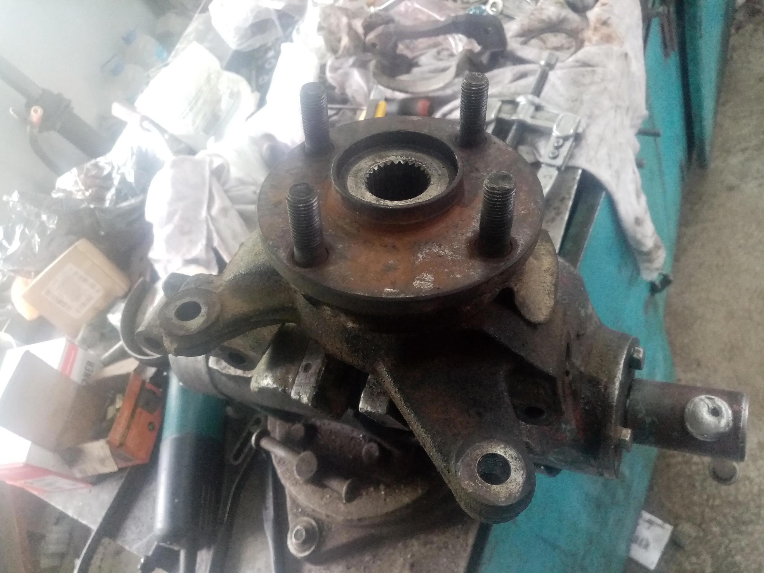 Вобщем, чинить это ведро смысла нет. Там всё сломано. Это - левая ступица. Её надо менять, ибо собрав новый ступечник с таким куском металлолома - люфт колеса не уйдет, и станет прогрессировать, и новый подшипник можно будет выкинуть в помойку. Владелец сказал - ставь старую, будем этот труп продавать. Его в металлоприёмку продать надо...