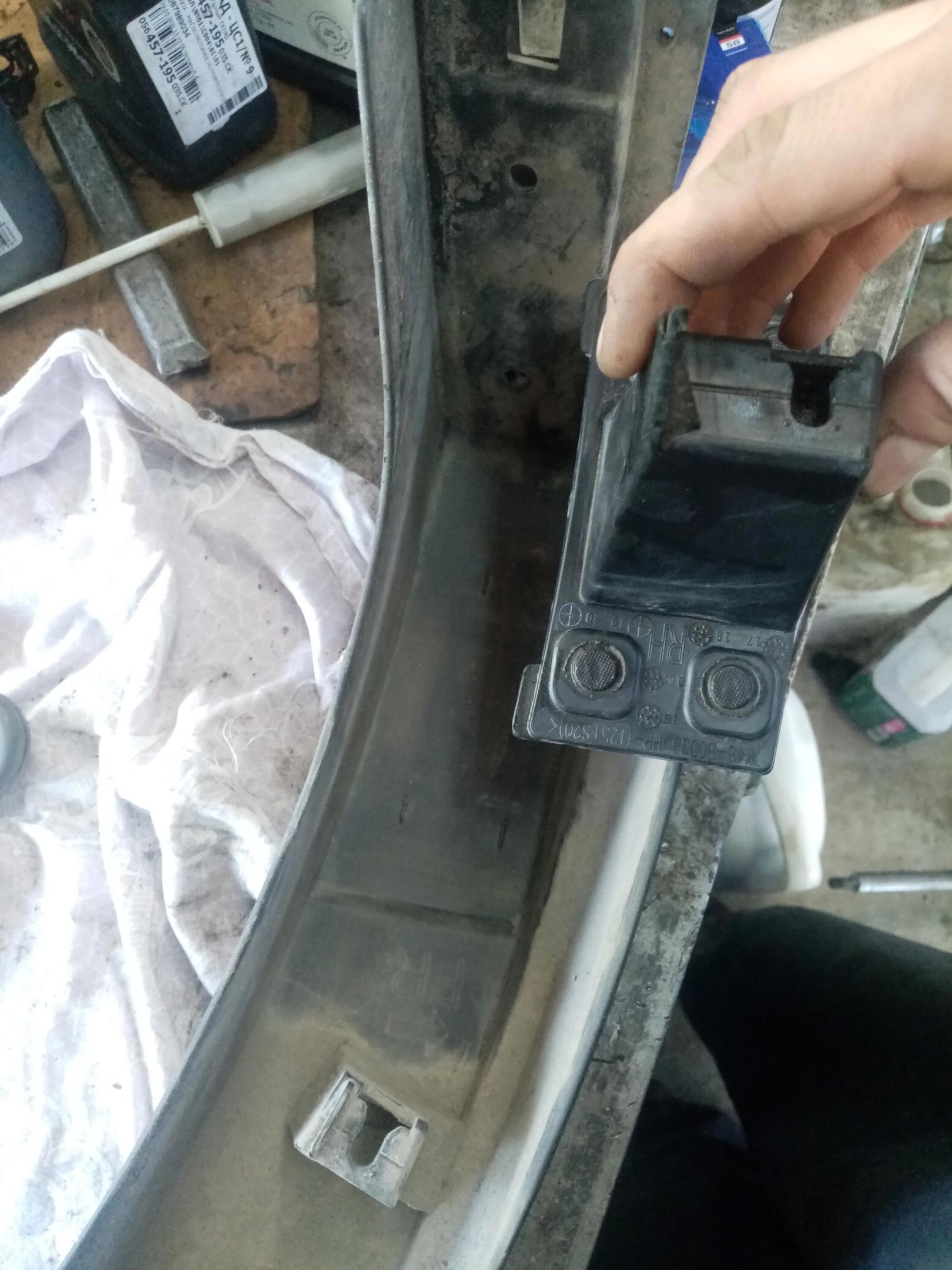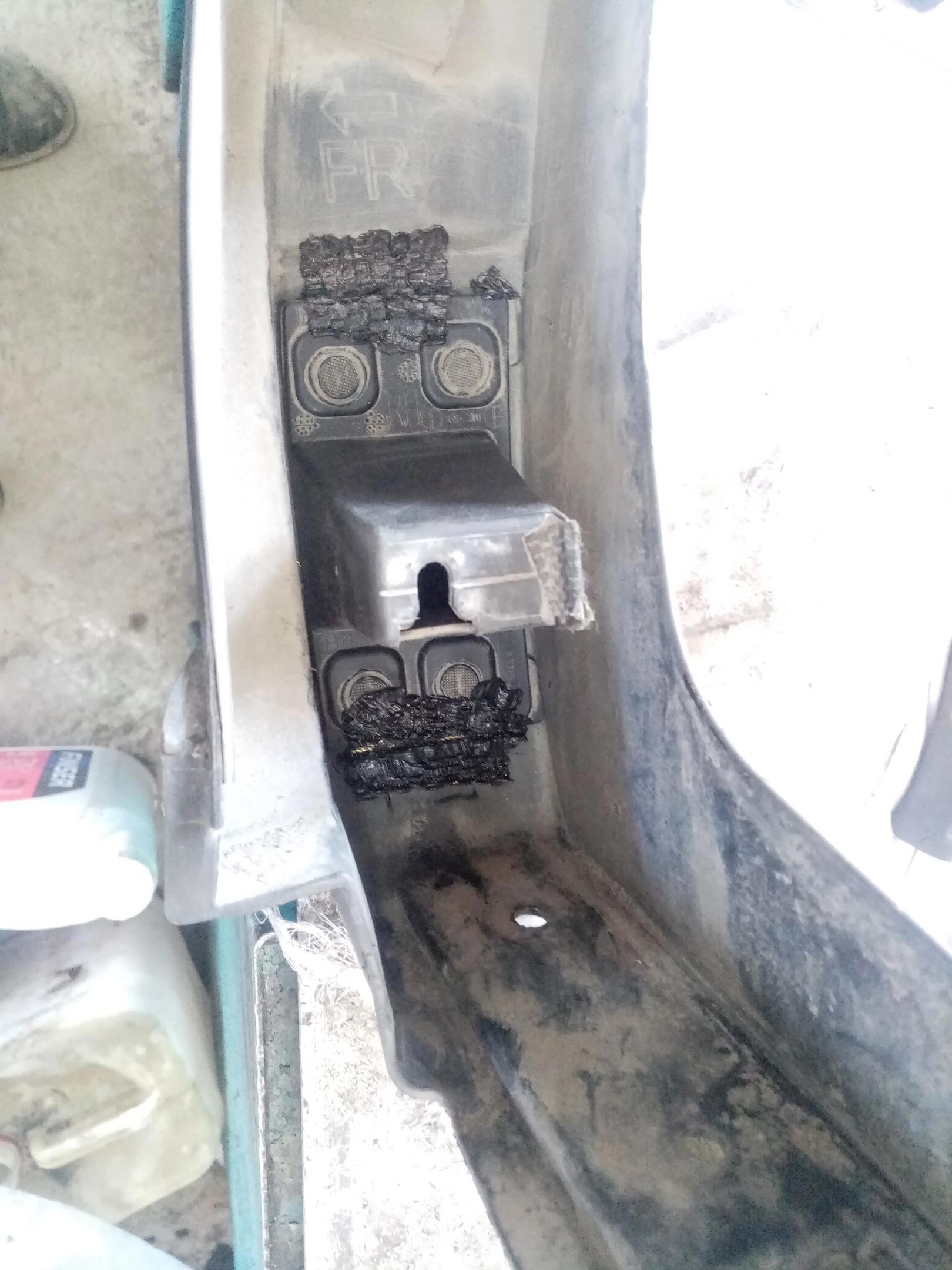 Дальше была Мазда СХ-9. Здоровенный такой корабль. Где-то кто-то как-то и чем-то вшатал его в накладку на порог, поломав у неё все крепления. Купить явно не дешевый автомобиль, и паять одноразовый пластик? У богатых свои причуды... Креплений оторвано было много, плюс пришлось греть феном пластиковую накладку на заднюю арку, которая была деформирована, и править. Получилась дикая ерунда, честно скажу. Но припаял на совесть.