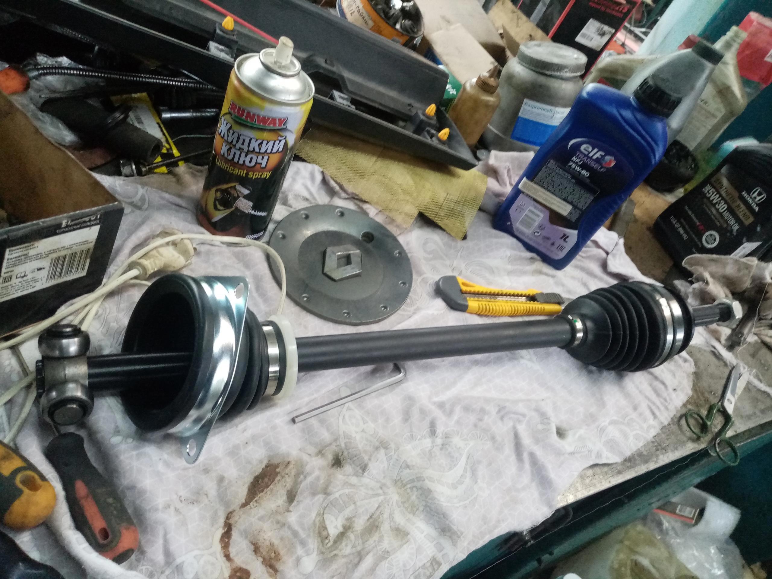 При этом лучше менять всю полуось, чем пытаться ремонтировать сальник. Дешевле выйдет. А! Там ещё слетел хомут с пыльника внешнего шруса, и шрус наелся грязи, поэтому замена полуоси в сборе была крайне обоснована...