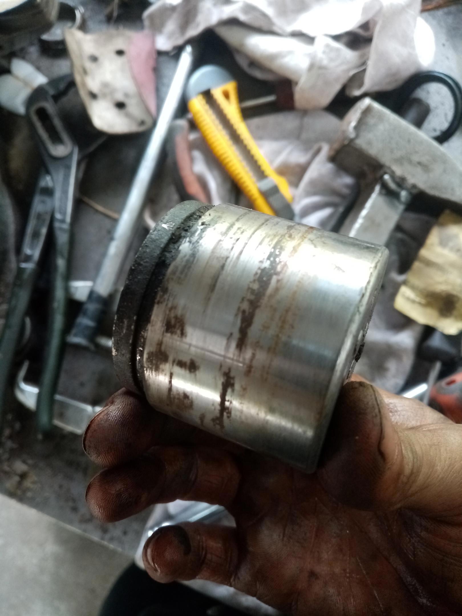 Я всё могу отчистить и заполировать, но не глубокую коррозию. Поршень - в помойку, по мере износа колодок он начнёт подтекать. Но другово поршня нет! Ставим тот что есть.