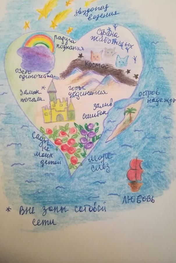 Эту картинку я тоже нашла в инете, решила нарисовать свое сердце, интересно будет через какое то время повторить этот рисунок, думаю какие то вещи останутся неизменными, что то новое добавится или нет.