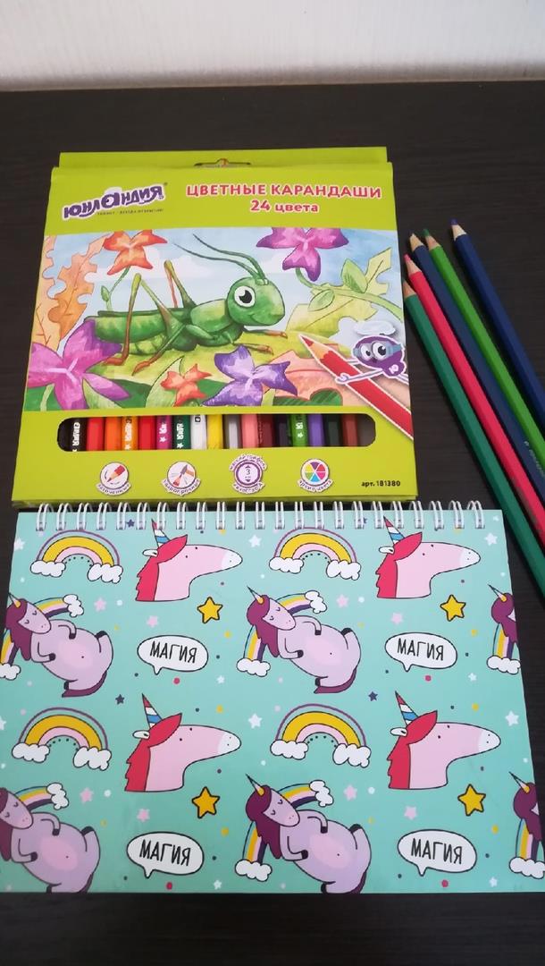 Люблю цвет моря и все его оттенки от голубого до синего, и все оттенки зеленого, темно-зеленого, изумрудного. Поняла, что этих цветов мне надолго не хватит, купила на Яндекс Маркете карандаши Ютландия 24 цвета, мягкие, много синего и зеленого, немного не Erich krause, но тоже понравились, за 160 р прям отлично. И еще скетчбук с единорогами.