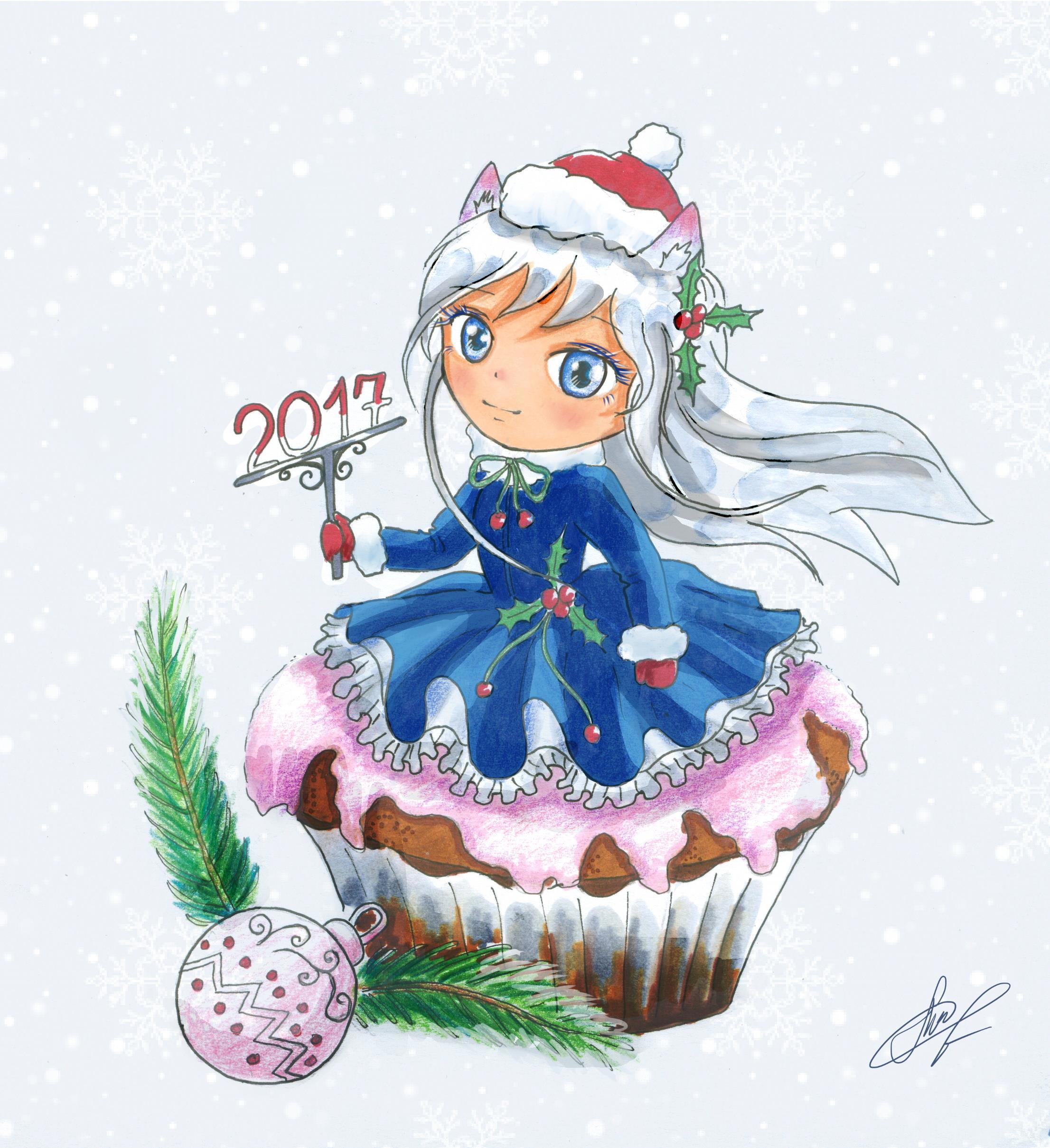 Ещё одна кексодевочка, рисовалось на конкурс. Конечно работа старая, но хочется поделиться, и внести в жару что то снежное.