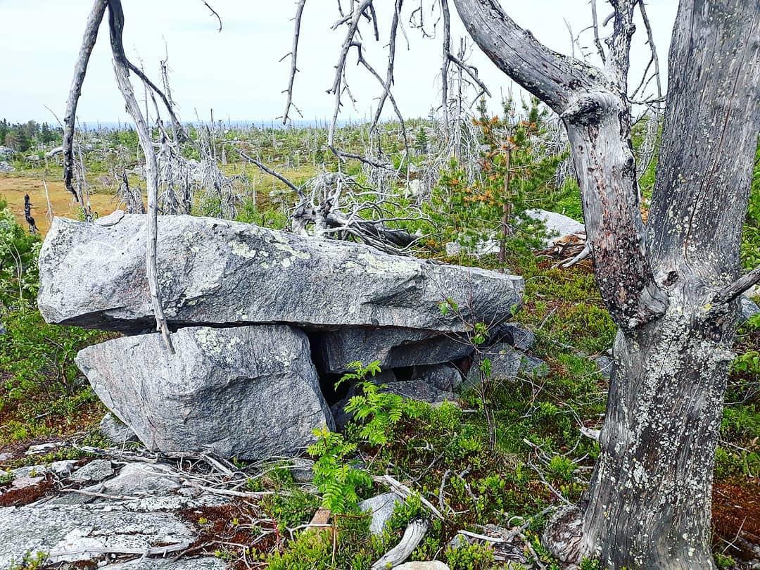 На вершине горы, покрытой зловещим мертвым лесом, встречается множество сейдов (камней на ножках), считающихся священными, а также других странных камней, считающихся некоторыми людьми руинами рукотворных мегалитических строений. Официальная же наука объясняет их происхождение особенностями движения ледника.