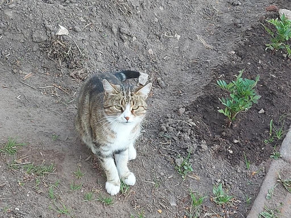А это Мася, самая здесь ласковая кошка. Любит руки, мурлычит, как трактор.