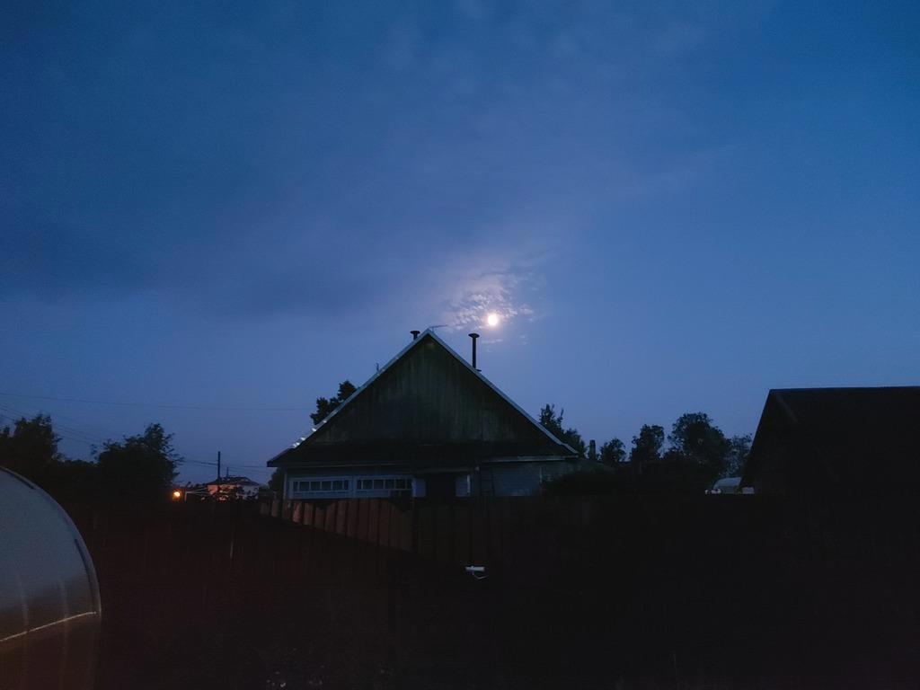 А иногда ночью недалеко от деревни воют волки на луну. Волков не заснял, они не домашние :) А луна - вот она, родимая.
