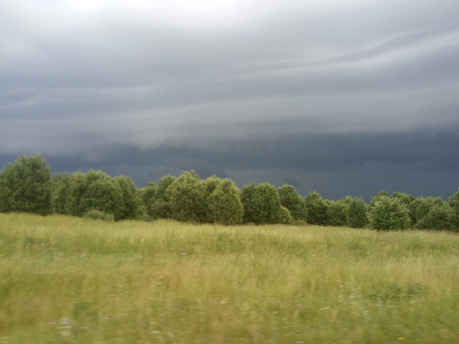 Где-то в районе Валдая Солнце сбежало, уступив место тучам и поистине тропическому дождю - пришлось прижиматься к обочине и ставать на аварийке, потому что дорога пропала, утонув в небесной воде. Как чуть успокоилось, поехали дальше.