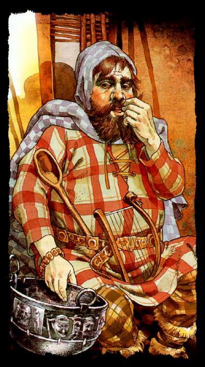 Ирландский Дагда во многом похож на этих двоих. Это огромный бородатый мужчина в плаще с капюшоном, в руках у него обычно не молот, но дубина, причем дубина волшебная: один ее конец убивает, второй — возрождает. А еще: котел, который полон пищи и никогда не пустеет, сколько бы из него не брали, и арфа, которая повелевает сердцами людей и сменой времен года. Иногда Дагду также именовали Дагда Донн, так что вполне возможно, что он является инкарнацией бога смерти и прародителя всех богов Донна.