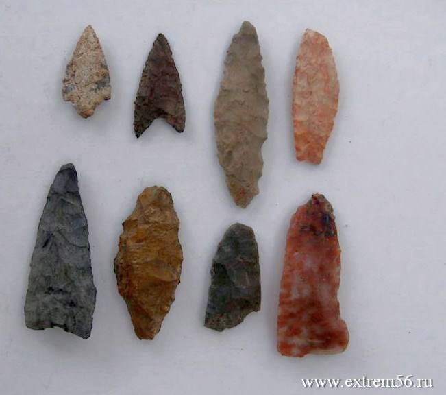 И всё-таки нет. Точно - не они. И этому уже откопали доказательства - каменные орудия. Интересны фото этих каменных орудий, оставленных первыми (а может и не первыми) жителями острова. Археологи, кроме них нашли значительное количество отщепов камня – отходов производства и отметили единообразие их размеров, что однозначно говорит о единой технологии изготовления. Но я бы ещё отметил, что наконечники здесь двух разных типов, что подразумевает два различных типа крепления к древку. То есть нельзя исключать, что в каменном веке здесь жили разные общины в разное время: