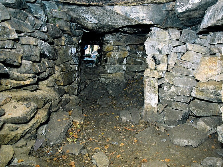О методах строительства уже мнения расходятся. Одни специалисты уверенно заявляют о том, что основа полуподземных сооружений была вырублена в скале, однако другие с ними не соглашаются и говорят о том, что первостроителями были использованы естественные разломы в скальном грунте. Как хотите, но я вполне солидарен именно со вторыми, ибо критерий «а нахрена?» у человека разумного появился отнюдь не вчера. Для меня, однако, куда интереснее тот факт, что эти сооружения вообще сделаны из камня. Это явно свидетельствует о том, что никакого леса в этих местах во время начала стройки просто не было. Да и климат был видимо куда мягче. Ведь жить в каменных «пещерах», слегка прикрытых дёрном во время суровой зимы немного проблематично – грунт будет промерзать. Да и следов копоти на камнях внутри особо не наблюдается, то есть там не топили. Так или иначе, но к началу было и продолжение. То есть стены предварительного котлована были выложены камнями, которые добывали здесь же – на острове. Сохранились следы клиньев на некоторых естественно слоистых камнях, с помощью которых откалывали нужные куски. Потом устанавливали дополнительные каменные подпорки и на них накатывали плиты кровли… как-то. С этим явная проблема – самый большой камень перекрытия весит где-то 17 тонн. Остальные не намного меньше. Согласитесь – перемещать их на нужное место, да ещё и очень осторожно, чтобы стены не разрушить, достаточно сложно. Оба мегалита не сохранились в первоначальном виде и приспосабливались новыми обитателями под свои нужды в более поздние времена. Специалисты провели потрясающую по сложности работу и сумели с определённостью доказать, что было как минимум три периода активной эксплуатации строений. Хотя датировки всех этих событий пока очень приблизительные. Оба мегалитических сооружения относят к совершенно новому своеобразному типу, не имеющему в мире прямых аналогов.