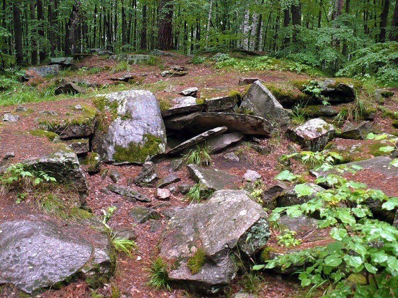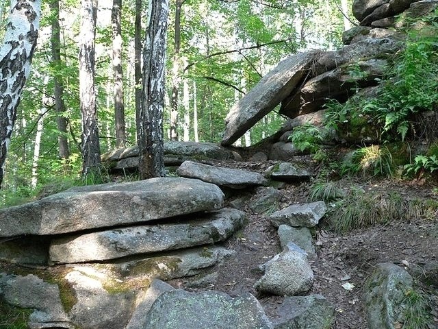 Уже эта возвышенность, хотя и считается природным образованием, но всё же её внешний вид заставляет в этом сильно засомневаться. Особенно, когда совсем рядом видны вот такие нагромождения камней, которые явно сами так лечь не могли: