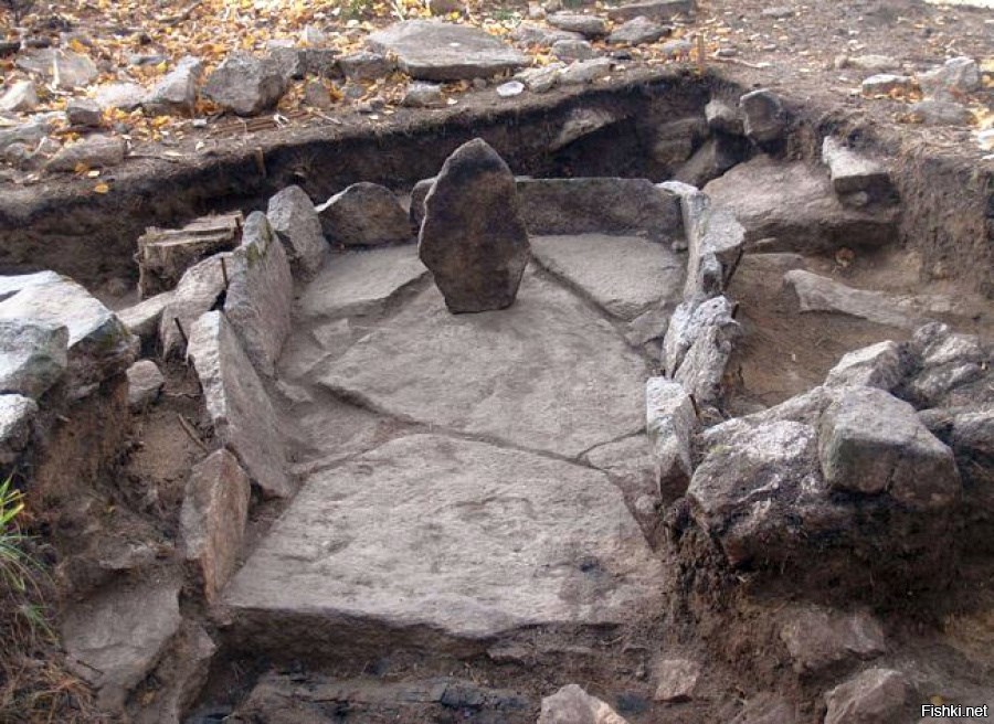 Ещё проходили сильно туманные сообщения о том, что где-то в районе «алтаря» откопали голову пантеры, высеченную из гранита и ещё какую-то голову с рожками. А ещё о фигурках волка и быка, найденных в самих «пещерах». А ещё об изображении рыбы, вырубленном на одном их менгиров. Не знаю. Фоток толковых, как ни искал – не нашёл. Однако и без этого понятно, что если раньше эти места для девственно чистыми для находок времён каменного века, то сейчас «из тьмы тысячелетий» на нас прёт целый религиозно-промышленно-культурный комплекс времён каменного века с солидной предысторией! Археологи говорят, что к трём десяткам известным объектам, они уже сейчас добавили ещё более 120 потенциально «грибных мест»! Да что говорить-то. Во время пробных работ на старообрядческом кладбище возле забора чуть капнули и вдруг выяснилось, что оградка-то этого кладбища была сделана ещё в третьем веке до н.э.! То есть кладбище было организовано задолго до того, как старообрядцы вообще появились в этом мире. И кто же тогда жил на острове и был здесь похоронен. Думаю - скоро узнаем. Но не думаю, что ответ будет простым т предсказуемым. Всего лишь один маленький островок на одном из многочисленных озёр Приуралья... и даже на нём оказался неолитический комплекс. И ведь совершенно ясно, что такое построили не кучкой в 20-50 человек, и не для кучки в 20-50 человек. Для такого серьёзного строительства нужны организованные усилия сотен, а может даже и тысяч людей. А это означает, что окрестности озера Тургояк и других озёр в этом районе ещё принесут много находок. На примере Тургояка даже можно примерно прикинуть, где проводить поиск. Это место должно быть около воды и оно должно быть на юго-восточном склоне какой-нибудь возвышенности... там скорее всего лиственный лес растёт.