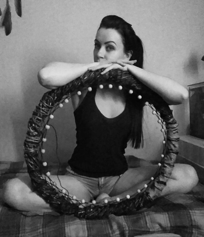 Я видела огромные ловцы снов, и мне они всегда казались несуразными, непропорциональными и слишком декоративными. Это было не мое. Поэтому я до последнего настаивала на размере основы не более 40 см. диаметром, иначе даже крупные перья будут смотреться слишком непропорционально. Но заказчик просил больше, поэтому пришлось абстрагироваться от своих предпочтений и подумать, как же из веток ивы сплести ровную круглую основу.