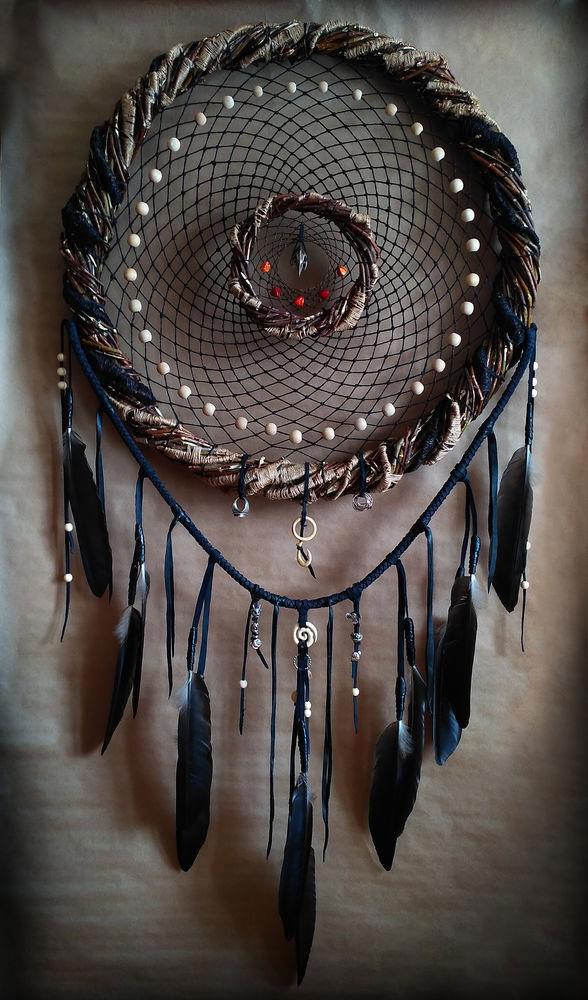 Честно говоря, было грустно прощаться с этим ловцом. Я очень долго его делала, думала о нем, переделывала, и уже так привыкла к чему то огромному на стене. И сам стиль — черный цвет, перья ворона, лаконичное и в тоже время самобытное — все это очень мне близко.