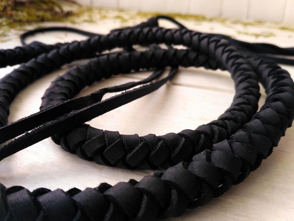 Был сплетена хлыст из кожи, который идеально вписался в стиль ловца и создал крепкий каркас для перьев и оставшихся декоративных элементов.