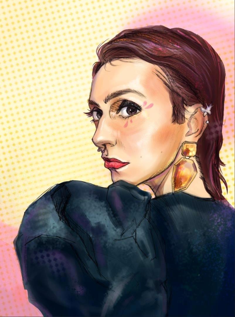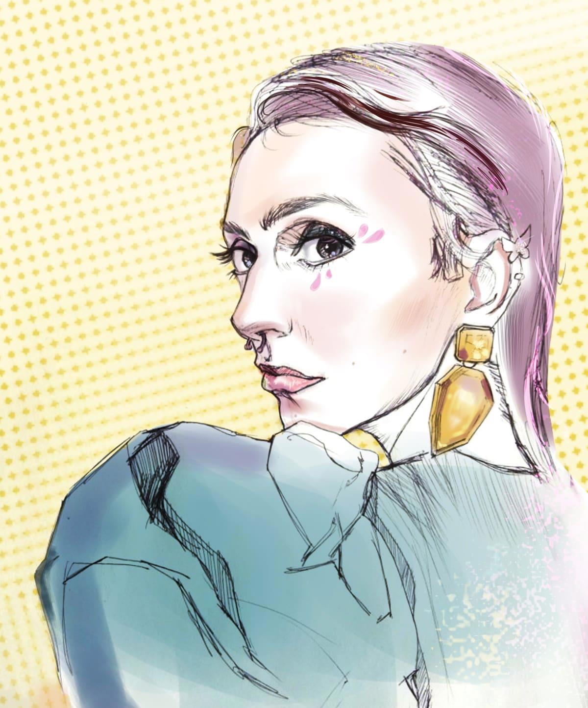 Эту даму рисовала специально максимально быстро, не стала сглаживать всякие неровности и т д, тянет сейчас на живую небрежность