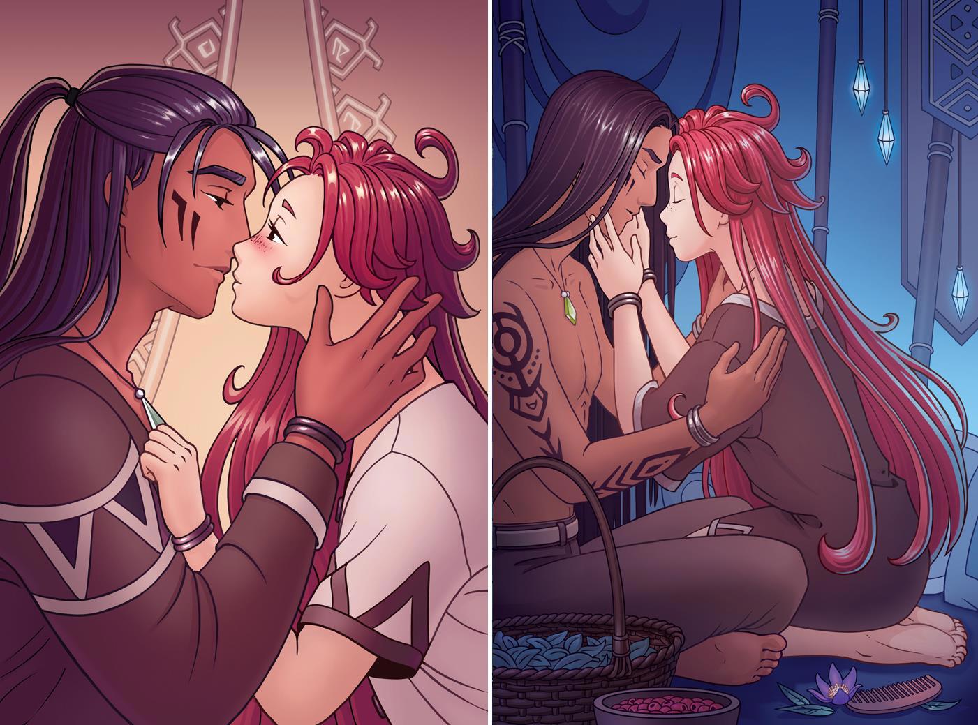 В этот раз, мне, кажется, удалось: обновленная сцена(справа) вышла более глубокой и трогательной, чем исходная (слева). Не просто влюбленная парочка, а по-настоящему родные люди, которые дорожат друг другом. И фон интереснее. А вы как думаете?