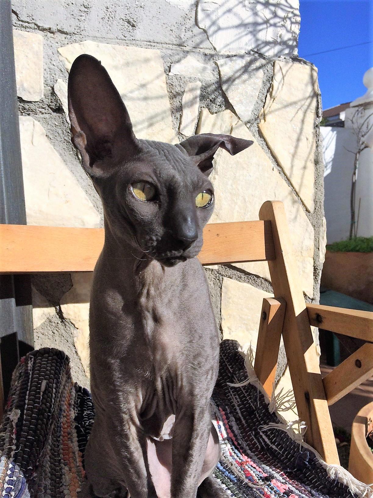 Автор: Нина ДемидоваДа, кот у меня необычный, голый. Для непривычных может показаться странным. Немолодой, одно ухо сьежилось - болел сильно прошлой осенью, дважды ухо оперировали, восстановить форму не вышло. Трусло, каких свет не видел, шипит со страху на незнакомцев - ну, защитная реакция у него такая. Короче, не идеал.