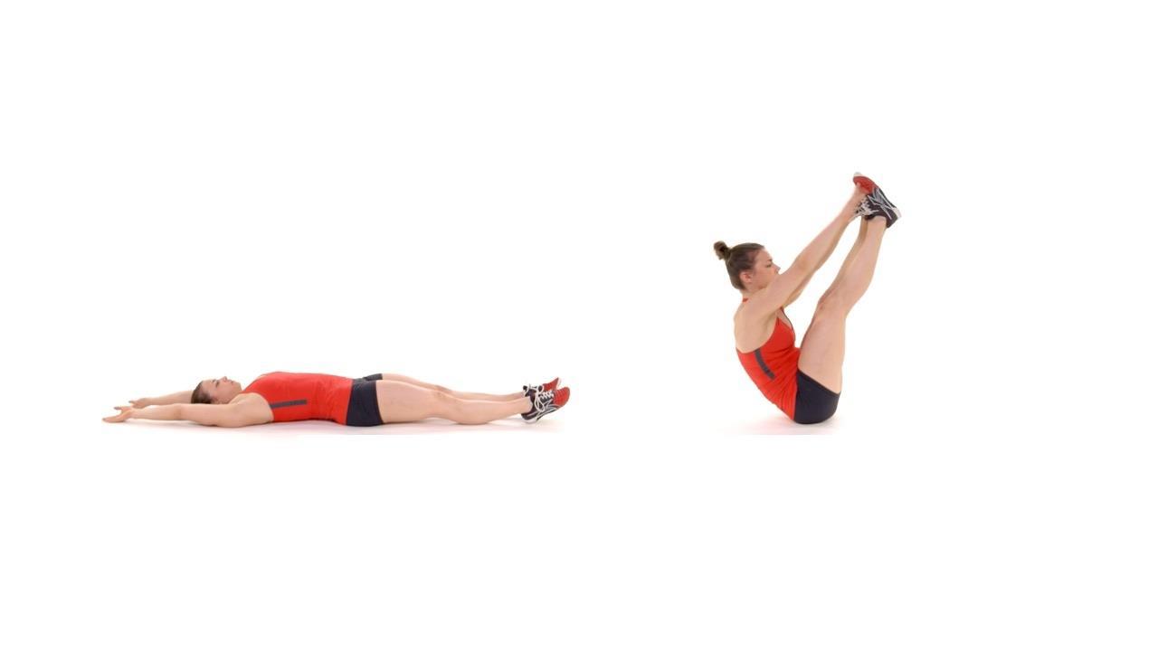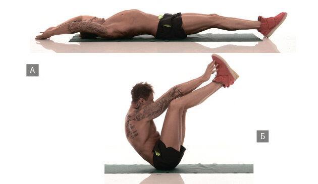 - на выдохе оторвите ноги от пола и начните придвигать их к себе, одновременно сгибая колени и подтягивая верхний корпус к себе насколько это возможно