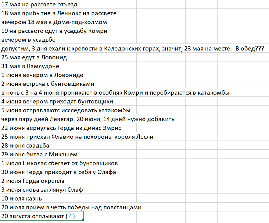 Почему только после редактуры, а не до написания текста, как нормальные автору? Да потому что я ненавижу хронологию и планирование. Они меня убивали во время работы над «Тропами», так вот тут еще пришлось отхватить порцию. Придется, видимо, еще раз вычитывать, хотя все сроки я уже завалила и вряд ли закончу редактуру к осени. Впереди ещё половина книги.