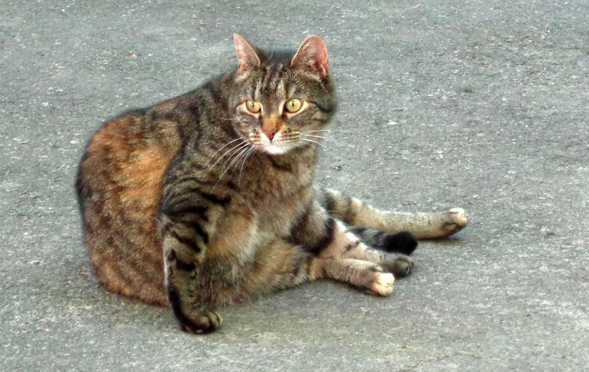 Кошки в жару валяются в самой густой тени, какую могут найти. Поэтому фотографировать их трудно. Но один важный котяра всё-таки позволил себя запечатлеть: