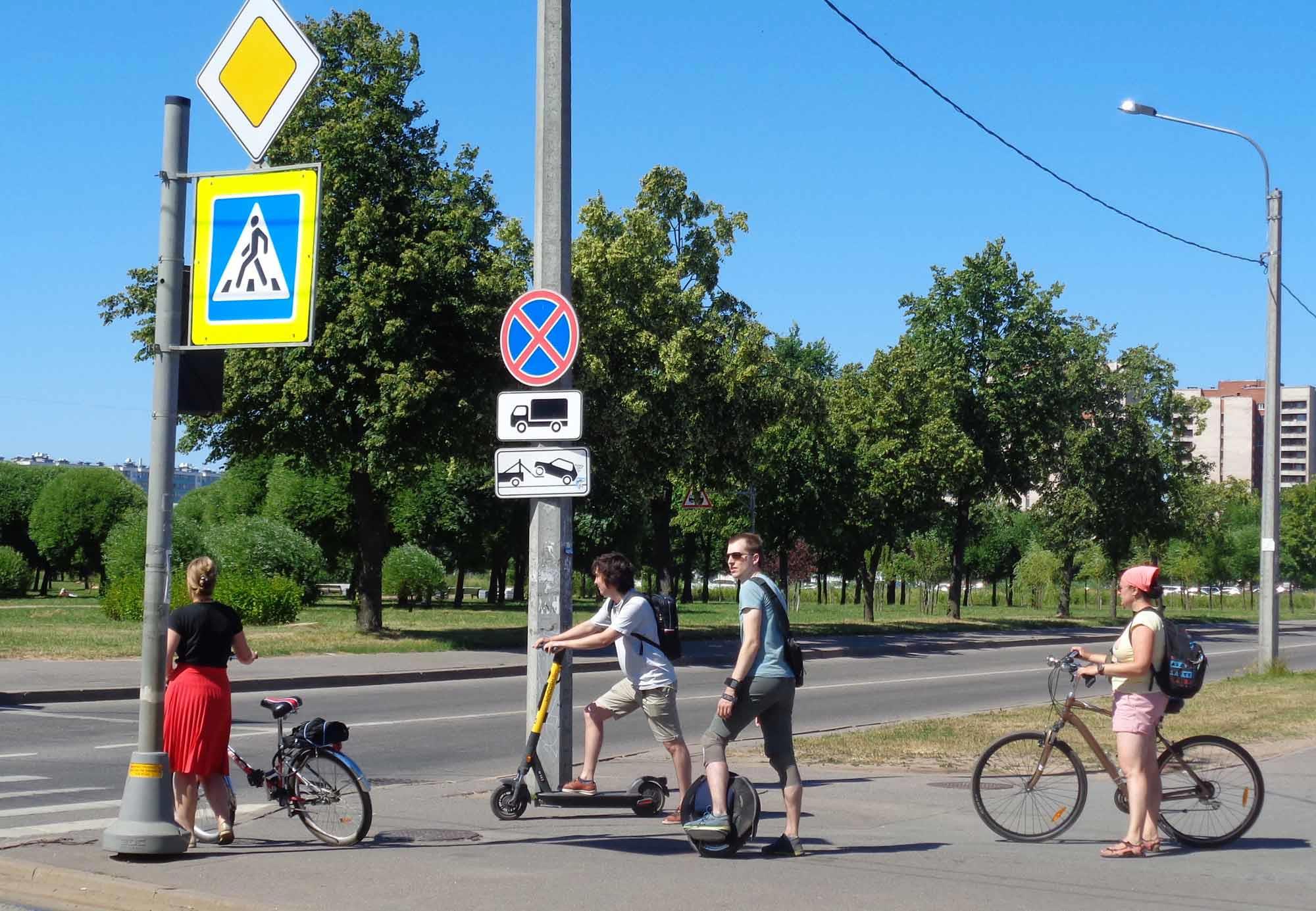 Пешеходы в ожидании перехода. Вот так передвигаются современные граждане. Пешком были только мы с сестрой: