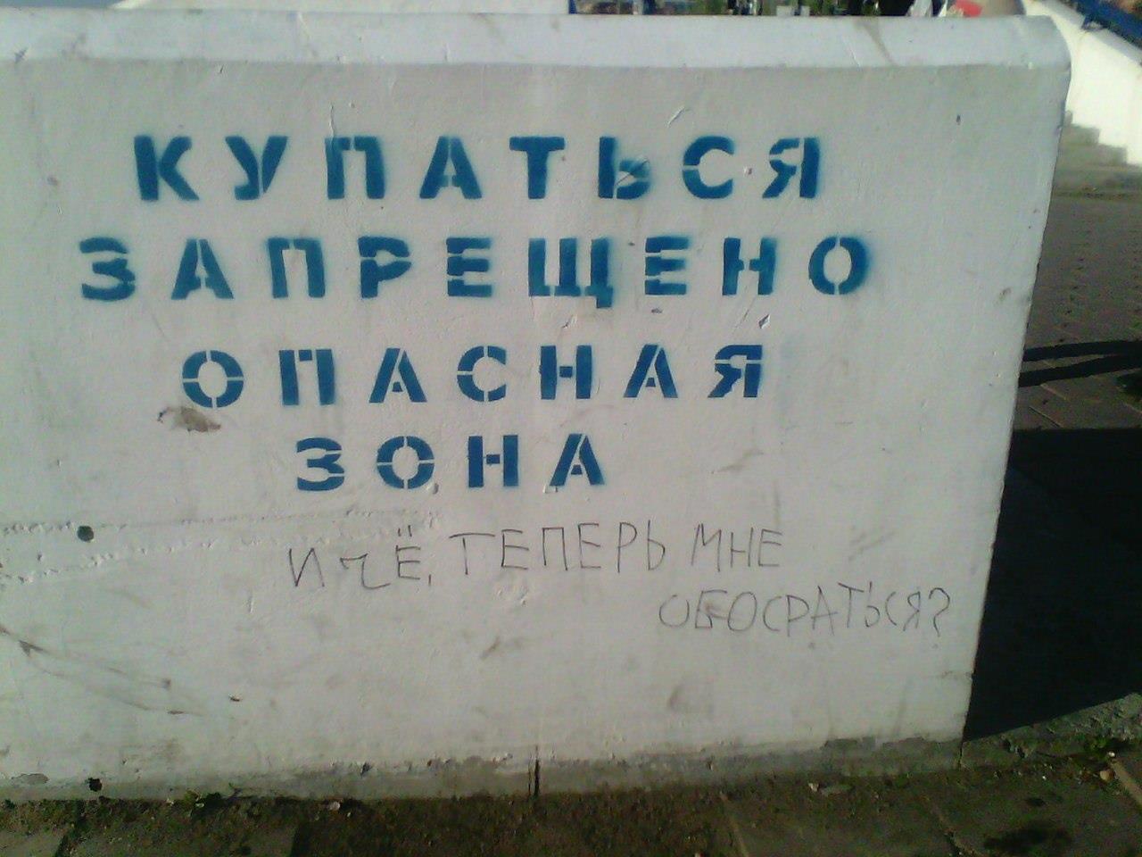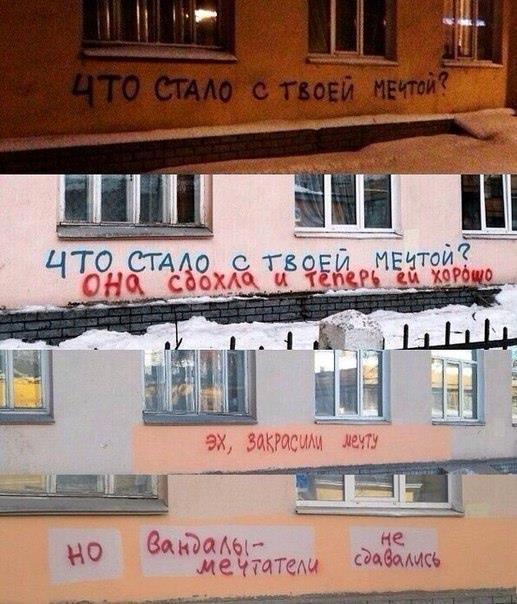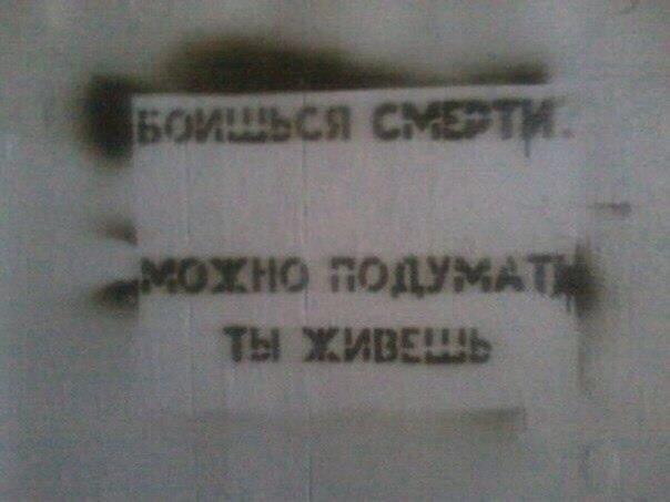 Автор: Серж ТомиловЕсть у меня меленькое хобби собирать и сохранять фотографии того, что написано или нарисовано на стенах. Известные высказывания, глубокомысленные или юмористические фразы, серьезные или ироничные подписи к рисункам. Некоторые сфотографировал сам, часть нашел в сети. Поделюсь своей коллекцией с вами.