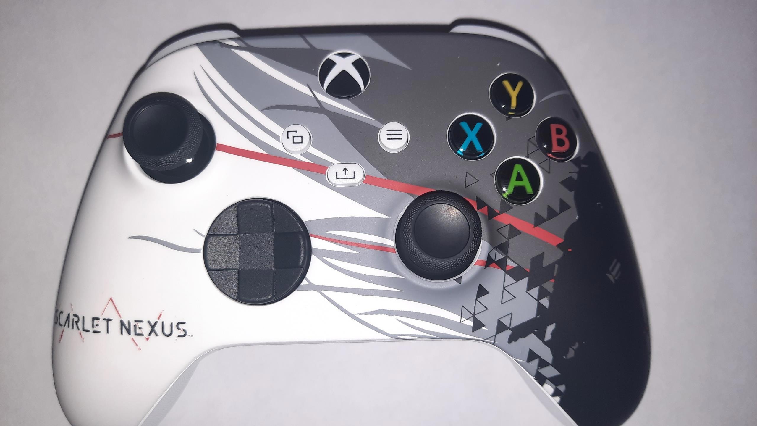 Как и было обещано организатором конкурса, геймпад выполнен в стиле игры Scarlet Nexus (жалко, что на жёстком диске нет свободного места, чтоб скачать её), по мотивам которой уже выходит аниме сериал.
