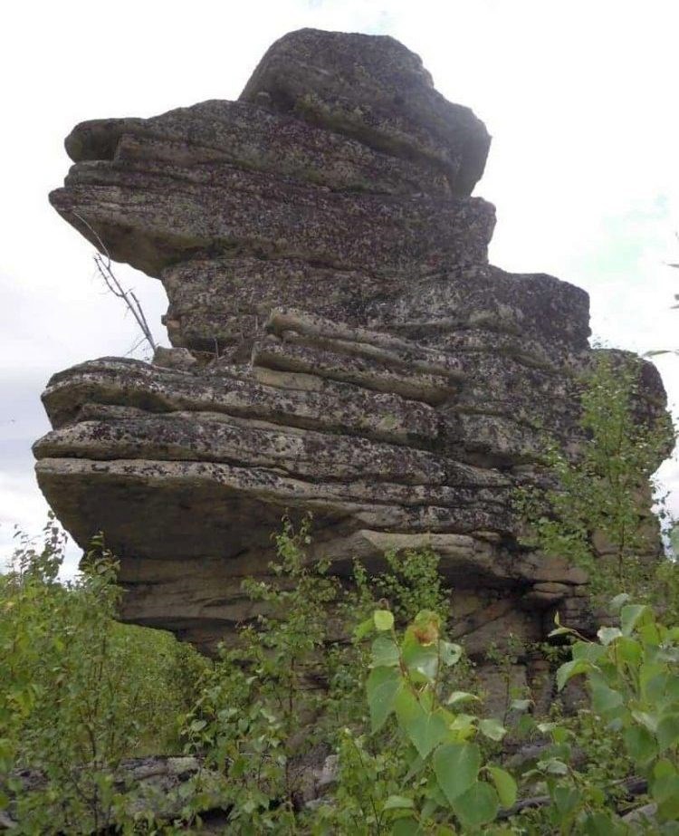 Хорошо. Попробуем пойти дальше, точнее полистаем ещё фотографии в интернете. Кстати, автор фотографий образований в составе Койского Белогорья сделал Сергей Изофатов. Я так понял, что именно он их и описал достаточно подробно. И описания эти ясности в части природного происхождения не принесли. Получается, что даже материал этих останцев в разных местах разный. И вот в этом месте желания поверить в природный юмор уже даёт серьёзный сбой – слишком странная шутка для природы: