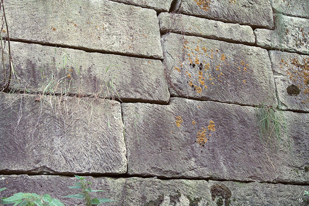 Сейчас никаких шлюзов уже давно нет. Завод был закрыт ещё в 1905 году. Но вот «канал» шириной 15 м от плотины до Чусовой есть. А ещё есть та самая «стена», вокруг которой и поднялся среди общественности весь сыр-бор. Она находится у воды. Длина стены около 135 метров и высота до 4 метров. Сложена из здоровенных ровных блоков разного размера. Длина самых больших блоков – до 2-х метров. В общем – блоки очень большие, очень тяжёлые и очень качественные. Сделаны блоки из минерала, которого поблизости нет. Там вообще нет ничего, что хотя бы отдалённо напоминало каменоломню. Говорят. Замечу – а может просто не нашли, хотя бы потому что никто и не искал особо? Интересна и сама кладка стены. Да, она местами та самая – полигональная. Эту стену кто-то описывал уже в наше время, но до настоящего изучения так дело и не дошло. На картах и схемах она отсутствует. А вот у туристов, при взгляде на неё, сразу возникают слова Перу, Мексика, Мачу… ну и т.д. Но это, конечно же, не серьёзно, хоть внешнее сходство небольшое есть. А хочется определённости.