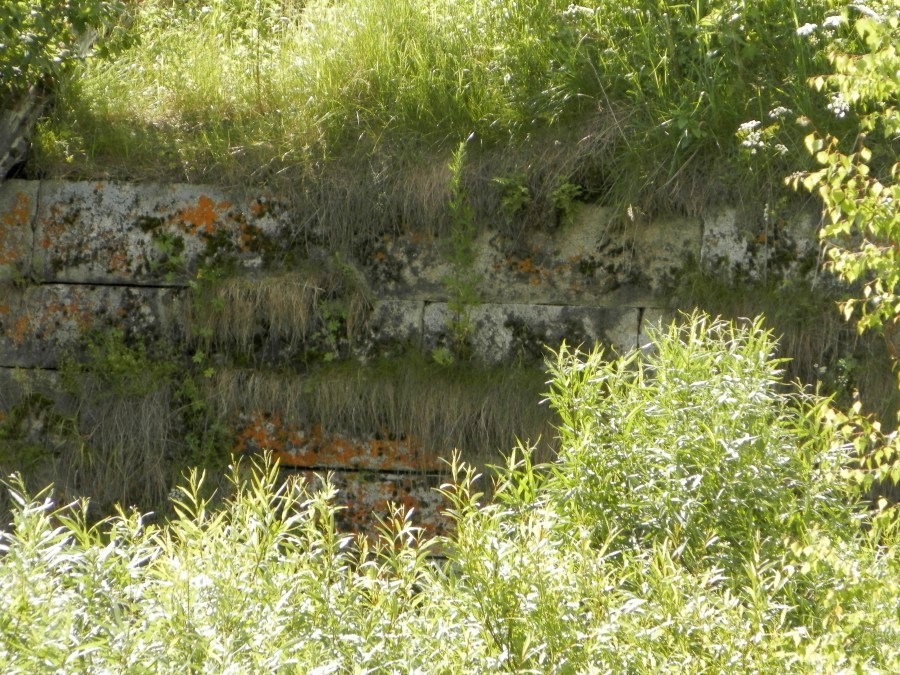 Стена имеет небольшой уклон от вертикали. Собственно, у всех, кто её видел, не возникает сомнений – это действительно не здание и не крепость, а именно укрепление берега.