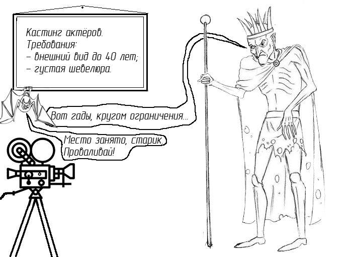 Согласитесь, ему не требуется так мимикрировать, как Дракуле. Выпил 12 вёдер воды и силы восстановлены, не требуется высасывать из кого бы то ни было жизнь, хотя тут спорный вопрос. Вы видели летучую мышь?