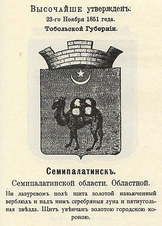Герб Семипалатинска 1878 года с официальным описанием (П. Винклер, 1899)