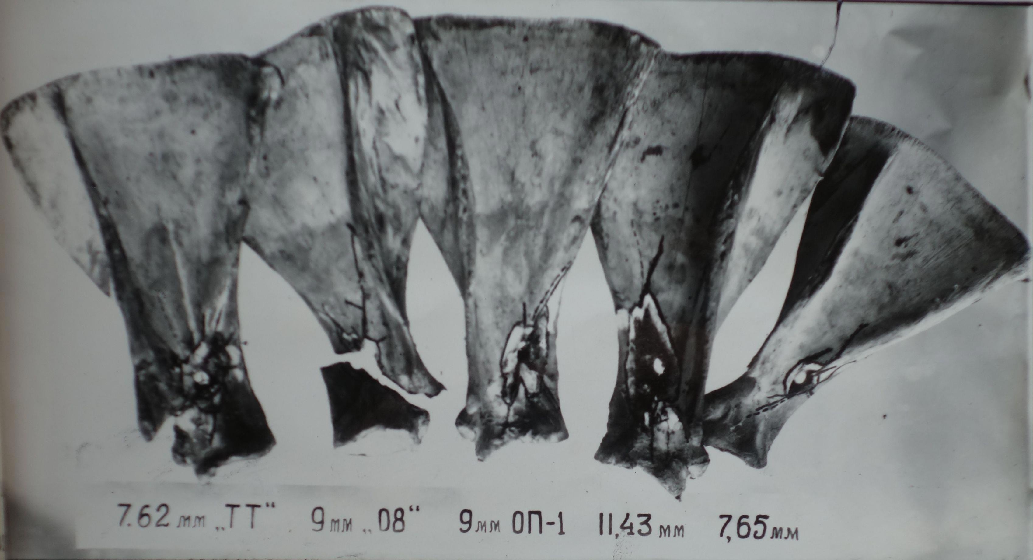 Поскольку я по этому поводу писал и говорил в роликах уже не один раз, повторяться не буду, а просто выложу несколько картинок с испытаний 1947 года. ОП-1 - это патроны Опытной Партии, будущий 9х18 мм. 9 "08" - это 9х19 мм (Стреляли из "люгера").