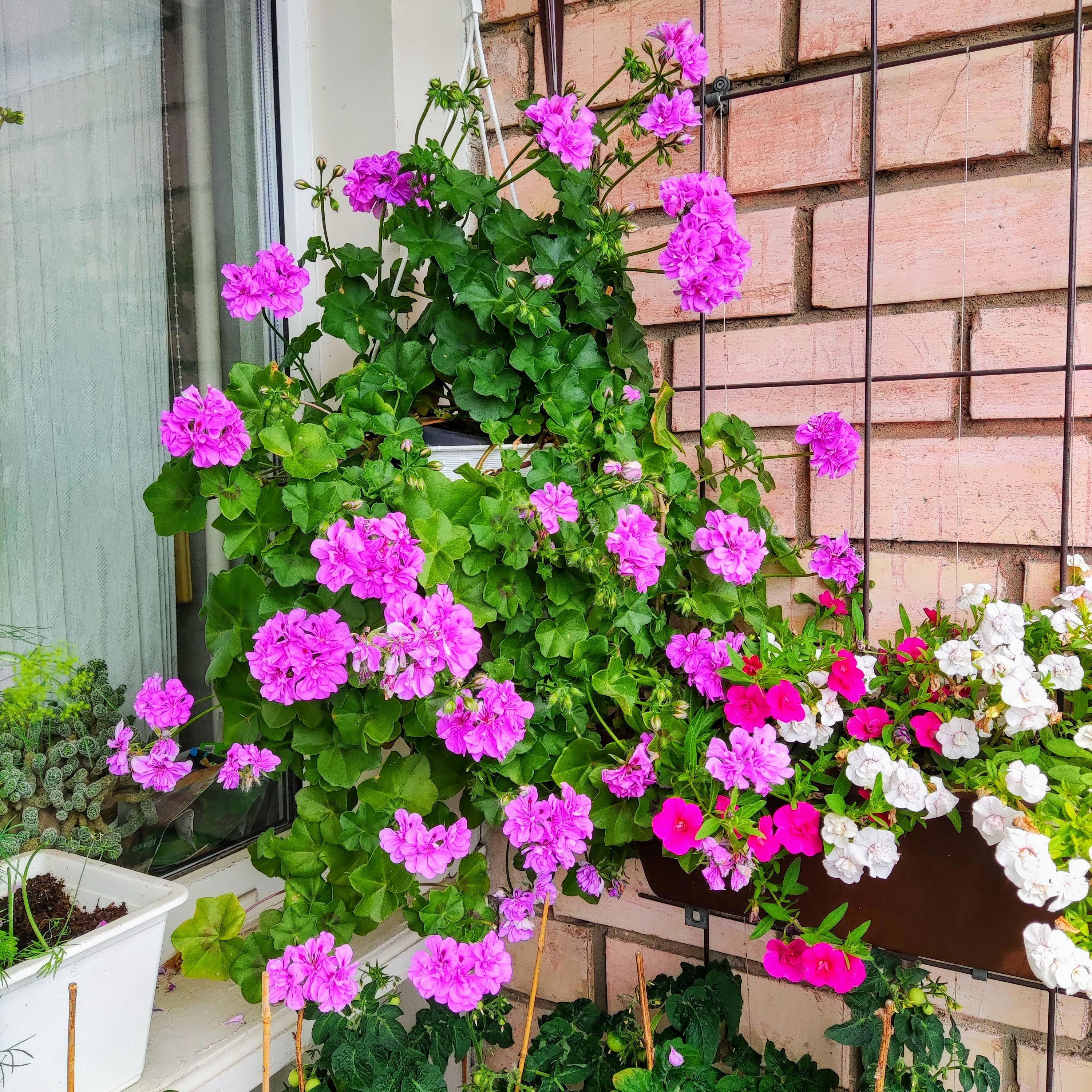 Это - очумелая герань, которая в этом году после 4-5 лет спокойствия решила, что настало ее время и вымахала так, что я начинаю уже сейчас чесать репу на тему, каким образом забирать ее осенью в дом.