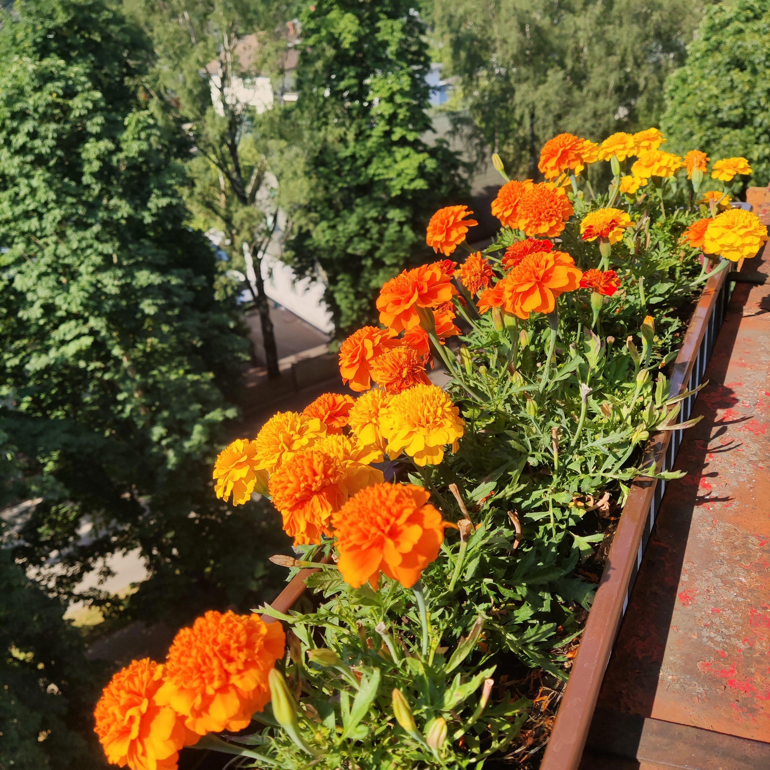 Точнее, не просто цветы, а – бархатцы. И не какие-нибудь, а те, что из года в год я выращиваю у себя на лоджии.