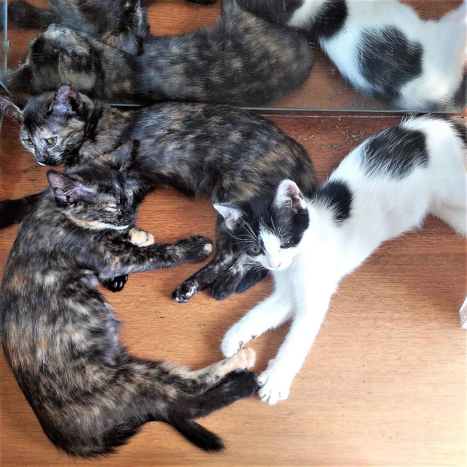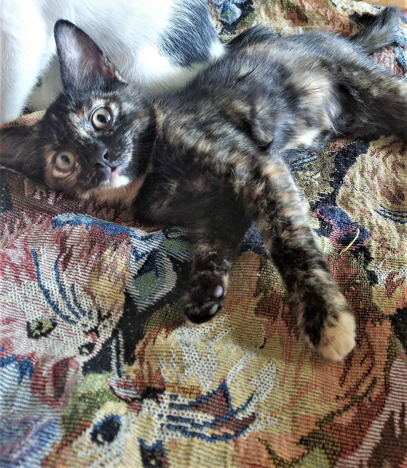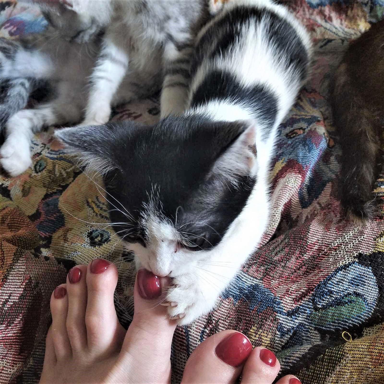 Самый шустрый, первым социализированный, альфа, был бессердечно навязан свекрови. Я просто пришла к ней с котом в руках, лотком, совочком, наполнителем и кормом и стала реветь. Ей стало меня жалко и кота забрали. Как результат - зверь уже испорчен и перебирает едой. На полу у него стоит 5 мисочек: вода, молоко, мясо куриное, отваренное 15 минут, мясо свиное, отваренное 15 минут, корм из пакетика. Предыдущий кот у них вообще ничего не ел и свекровь ему в горло пальцами запихивала кусочки филе. Я пыталась объяснить, что незачем такое делать, но кто и когда меня слушает? Хорошо, хоть взяли.