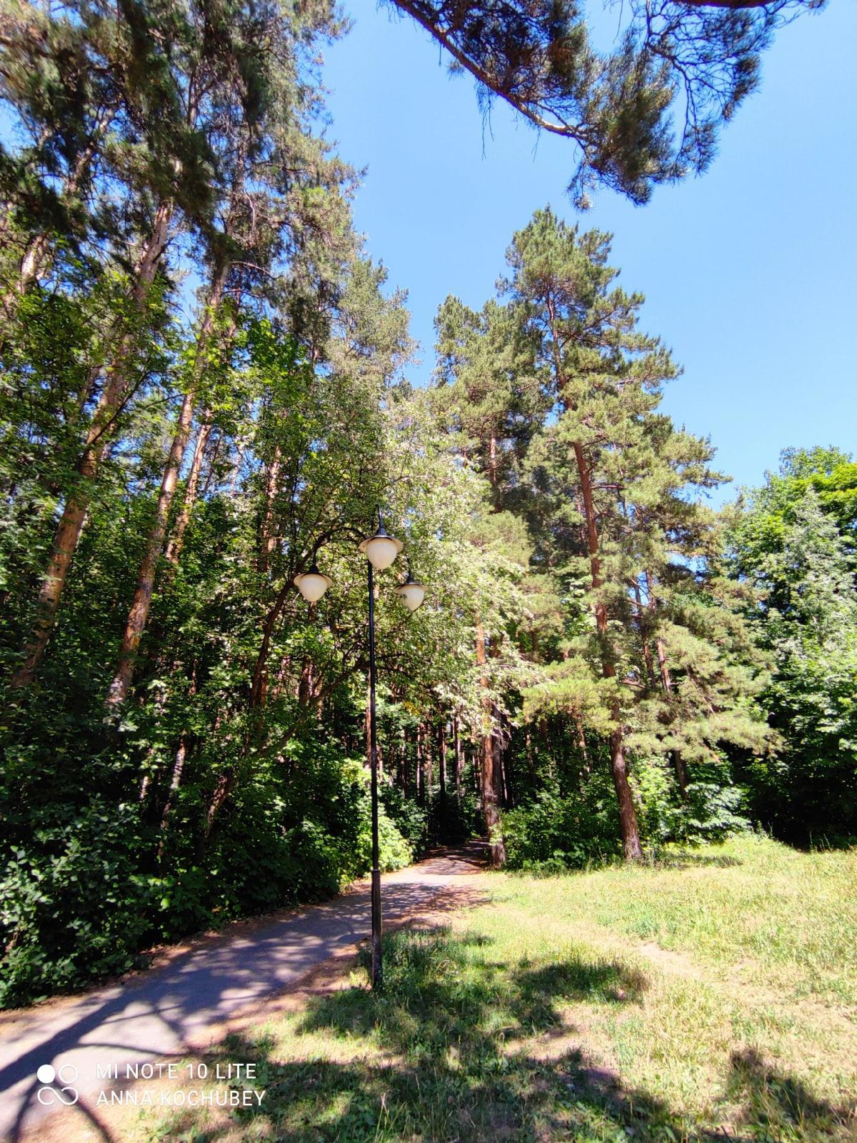 Тащат горячий крепкий чай. Пью. Ждем, нервируем очередь, врачи расходятся по кабинетам, но остаются на стреме. Через полчаса встаю сама, иду в кабинет мерять давление – оно в норме. Всем спасибо, извините за беспокойство. Едем с мужем (тоже уколотым, но без последствий) в парк, благо он в паре шагов, сидим на лавочке, где я окончательно прихожу в себя. Лето в разгаре, небо синее, сосны, жизнь прекрасна. Фото с места событий: