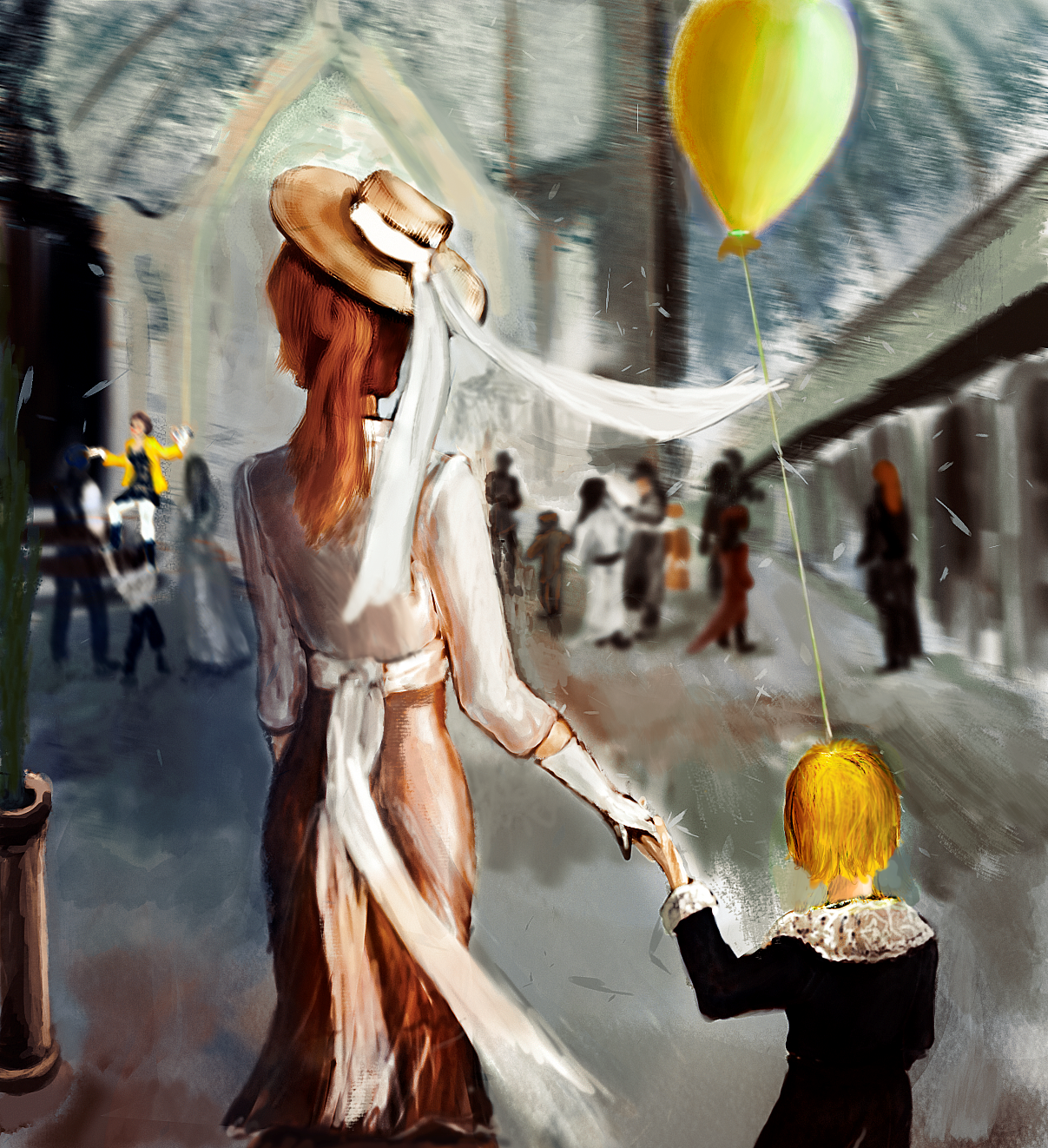 Вот и клоун с воздушными шариками заприметил новую жертву: маленький светловолосый мальчонка тянул за рукав молоденькую девушку (то ли сестру, то ли гувернантку) и, умильно шепелявя, тыкал пальчиком в причудливых надувных зверей, извивающихся на привязи нитей в руках комика...