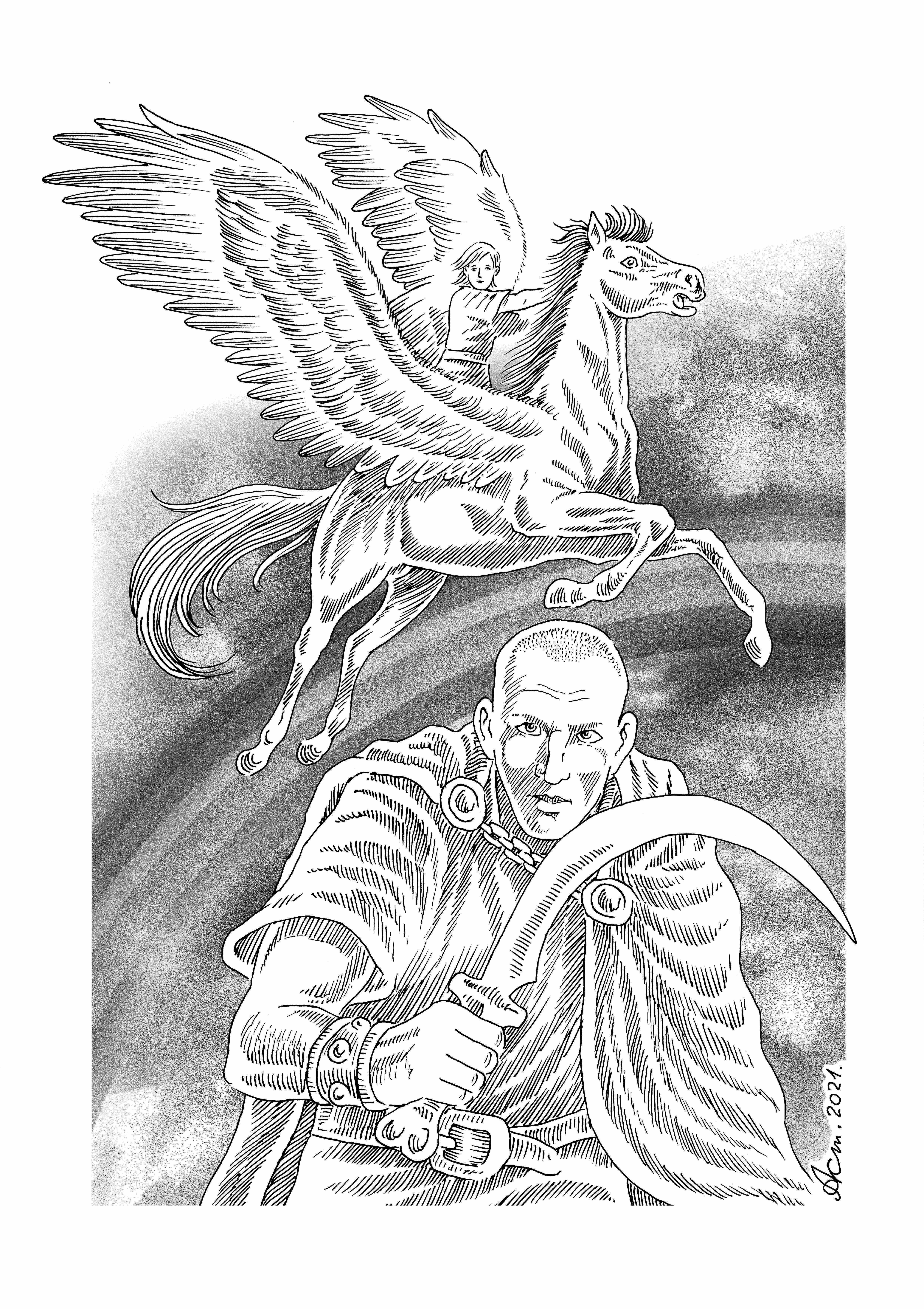 Перешеек и храм исчезают, тают позади. Пегас завершает круг. Мы летим на юг. Дорога вьется узкой лентой некрашеного полотна. По краю – кайма тени. Оглядываюсь, но Эфиры не вижу. Дом, акрополь, источник. Меня принесли неизвестно откуда, но меня принесли на родину! Отец, мать. Дед. Братья.