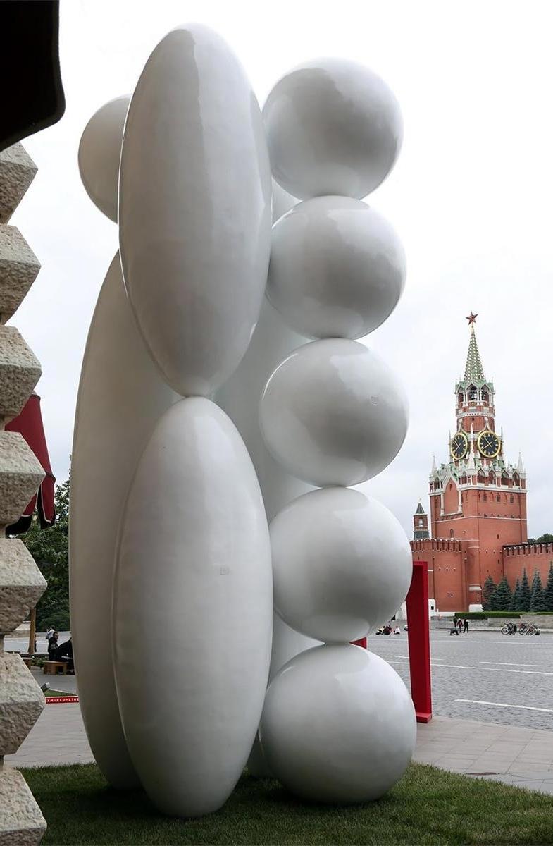 скульптура символизирует стабильность при переходе из пятого в третье, земное измерение. Она состоит из четырех вертикальных элементов, имеющих различные отчленения в своей вертикали. И если пройти против часовой стрелки, то можно от большого цельного вертикального элемента дойти до элемента, который расчленен на пять шаров.