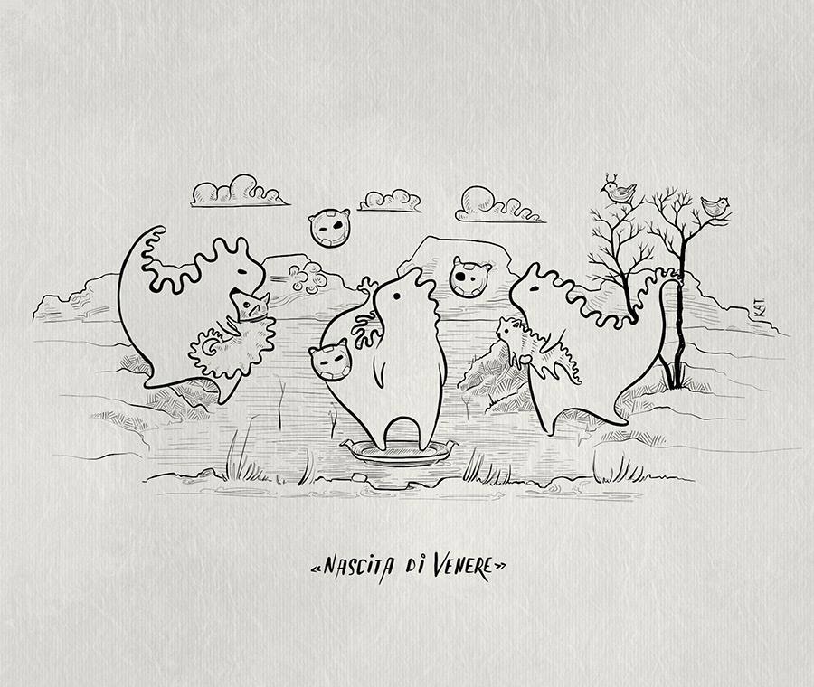 (на рис.: мышкозавры косплеят классику: Сандро Боттичелли, «Рождение Венеры»)